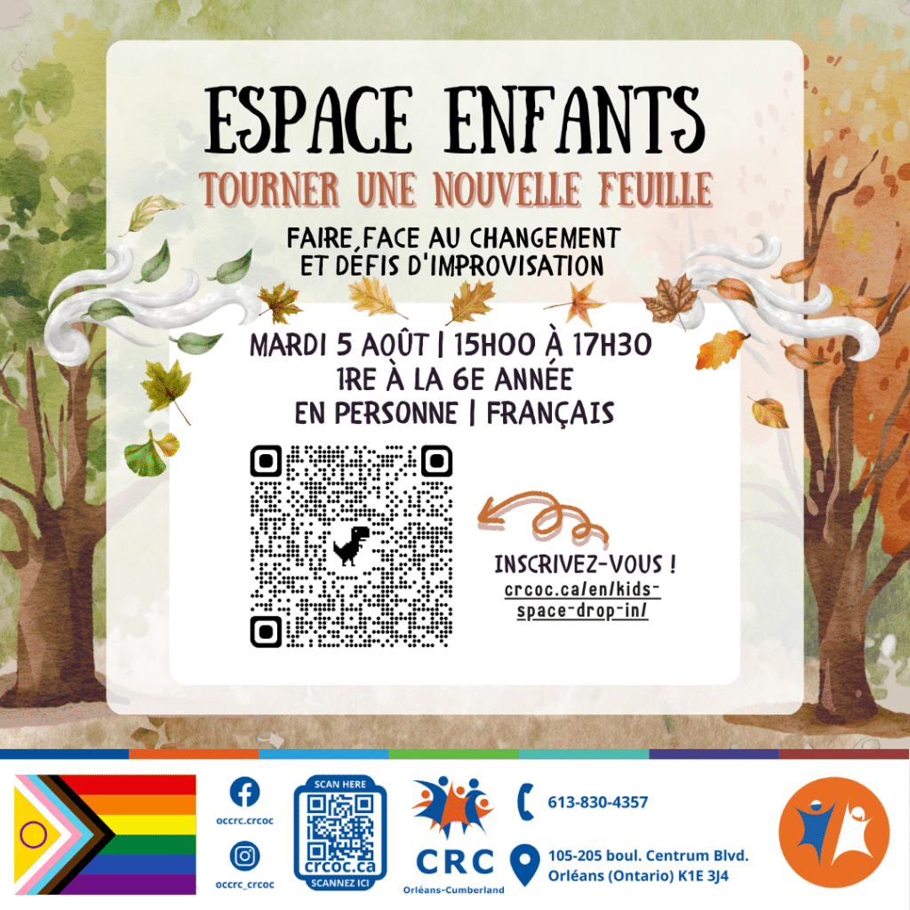 Kids Space Grade 1 to 3 – Bi-weekly, bilingual, ongoing program. // Espace Enfants: 1e à 3e anneé – bimensuel, bilingue, programme continu.