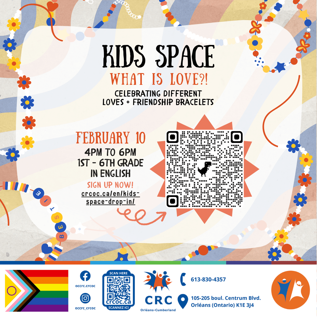 GRADES 1 TO 6 | WEEKLY | BILINGUAL | IN PERSON | LIMITED SPOTS (MAX. 15) A space to connect with other kids, learn about themselves, practice social skills, and have fun! Tuesdays from 4 to 6 p.m. February 10th: What is Love ?!  -- Celebrating different loves and friendship bracelets Activity registration will begin ... -> READ MORE - LIRE PLUS